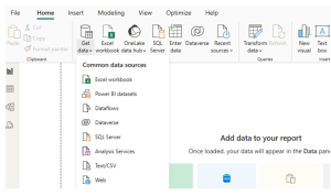 - Click on Home > Get Data > Text/CSV.