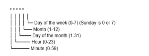 A cron job uses 5 fields to specify its schedule.